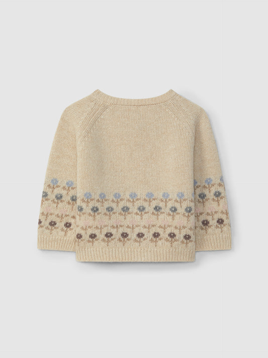 CARDIGAN CIPRIA CON BOTTONI DI LEGNO E SSTAMPA GEOMETRICA FIORI